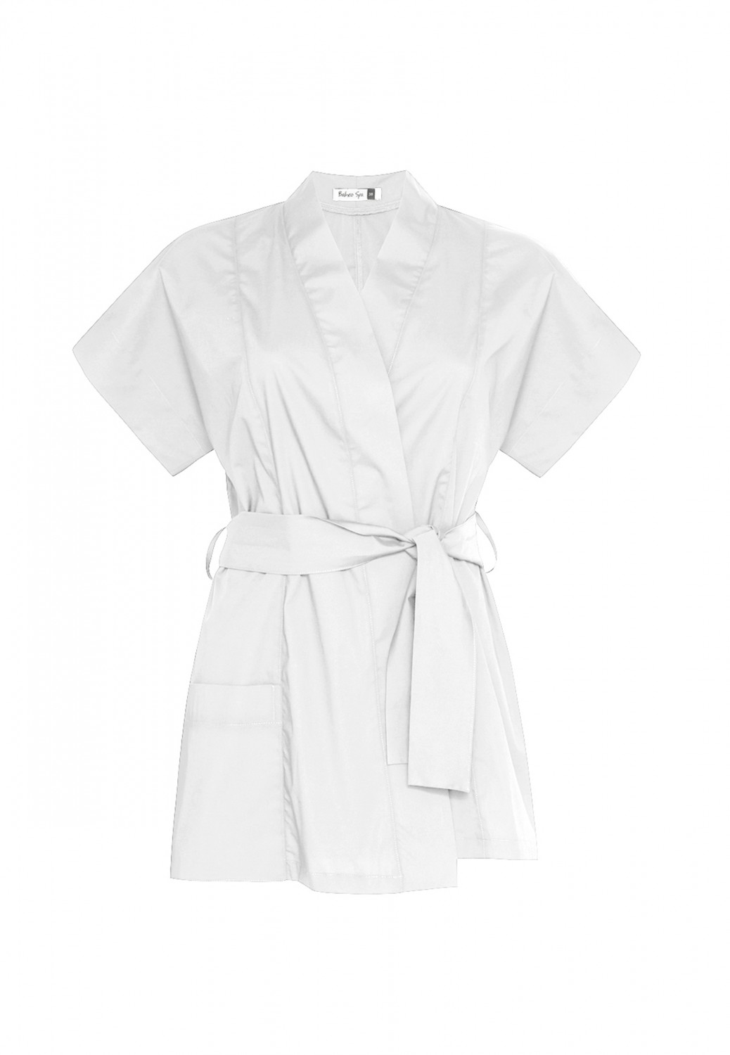 Kimono incrociato con cintura e tasca applicata sul davanti.
